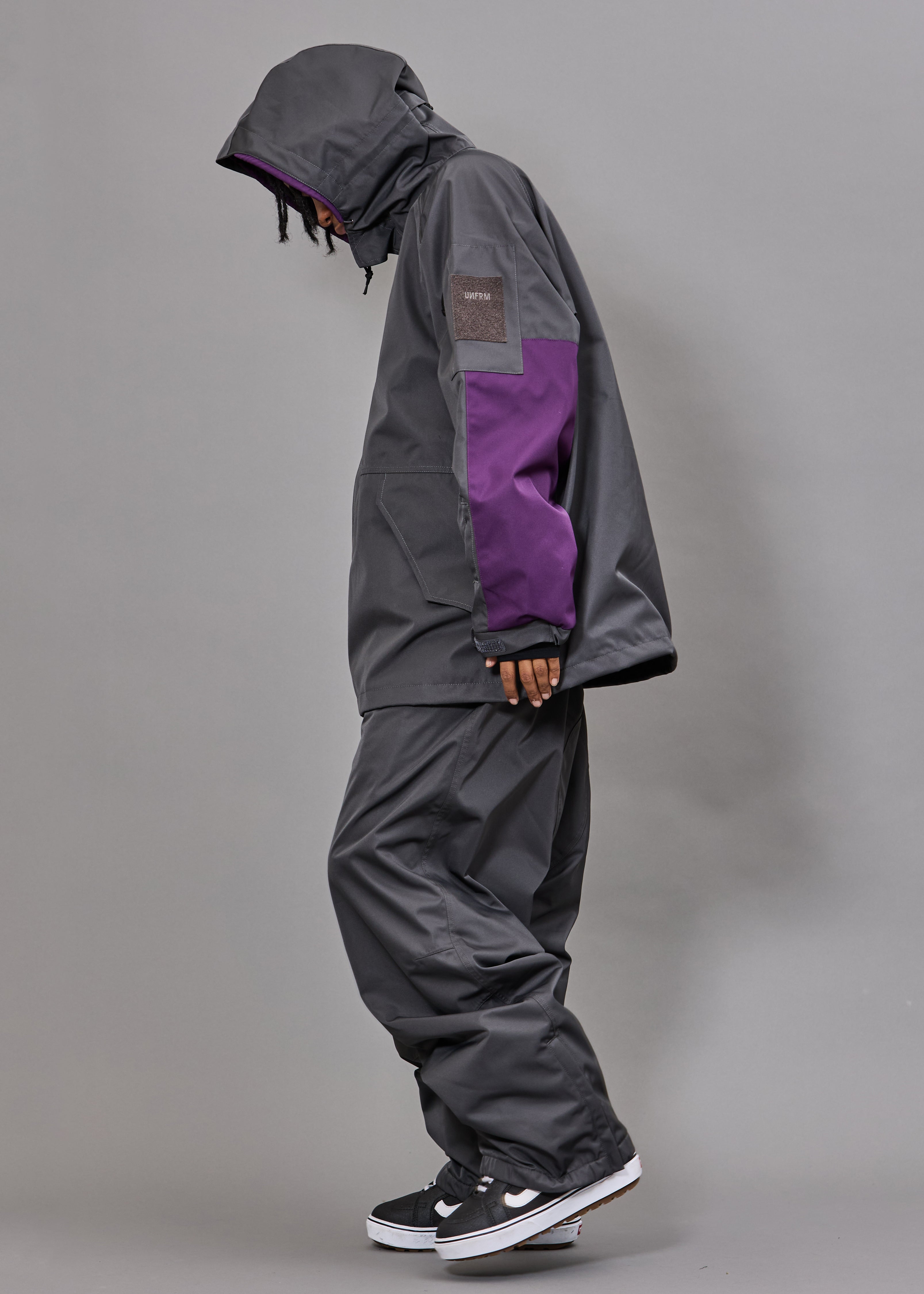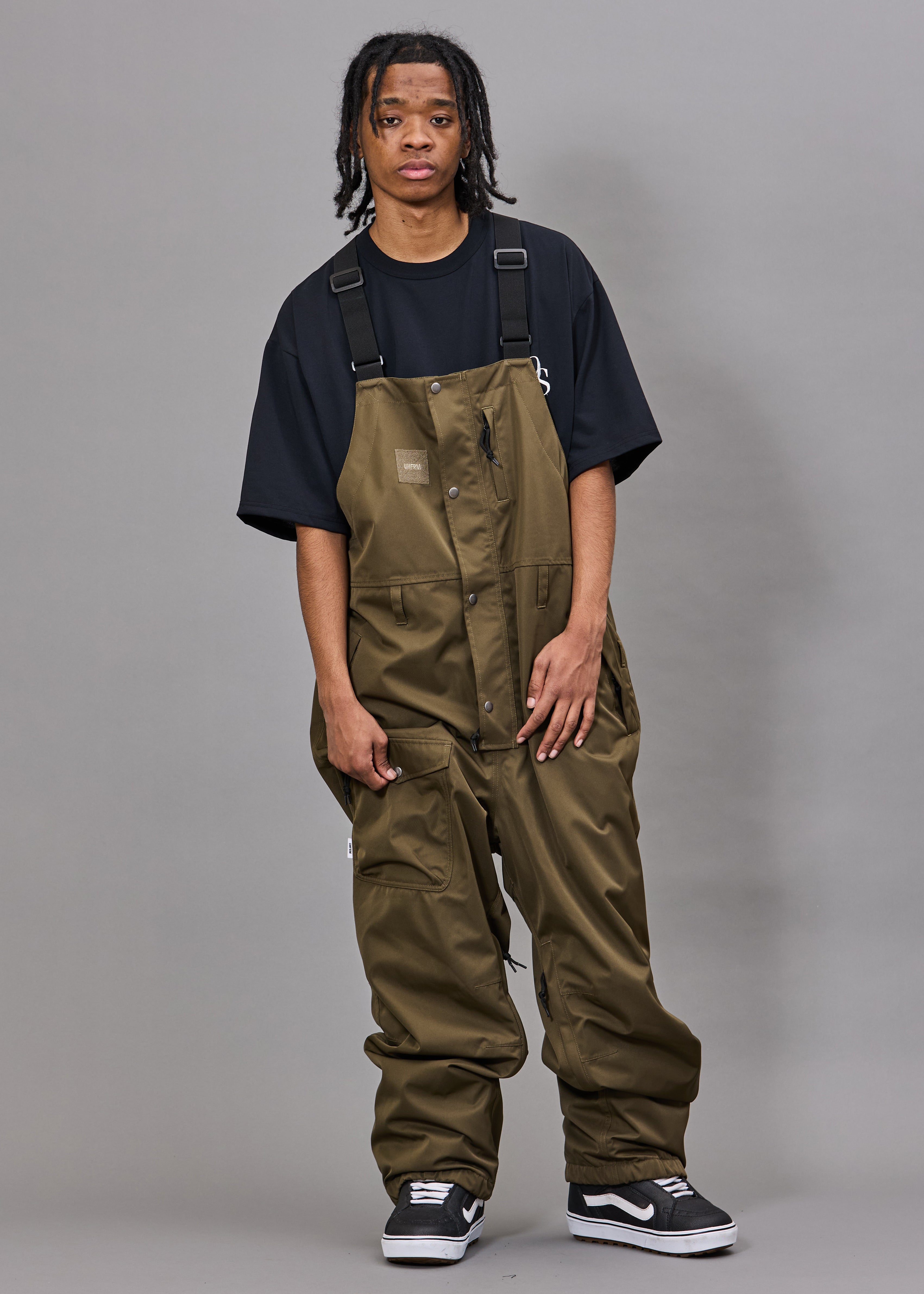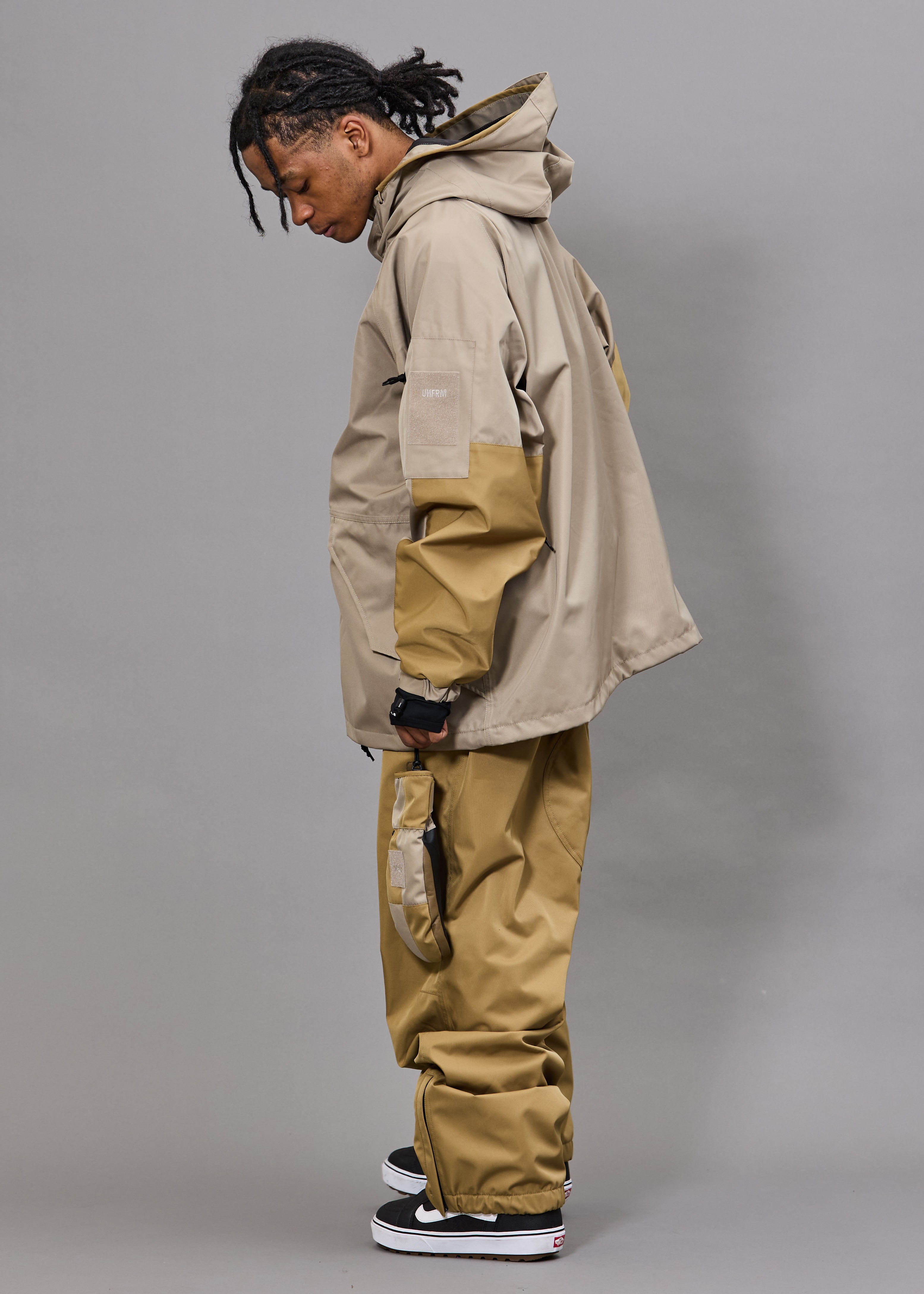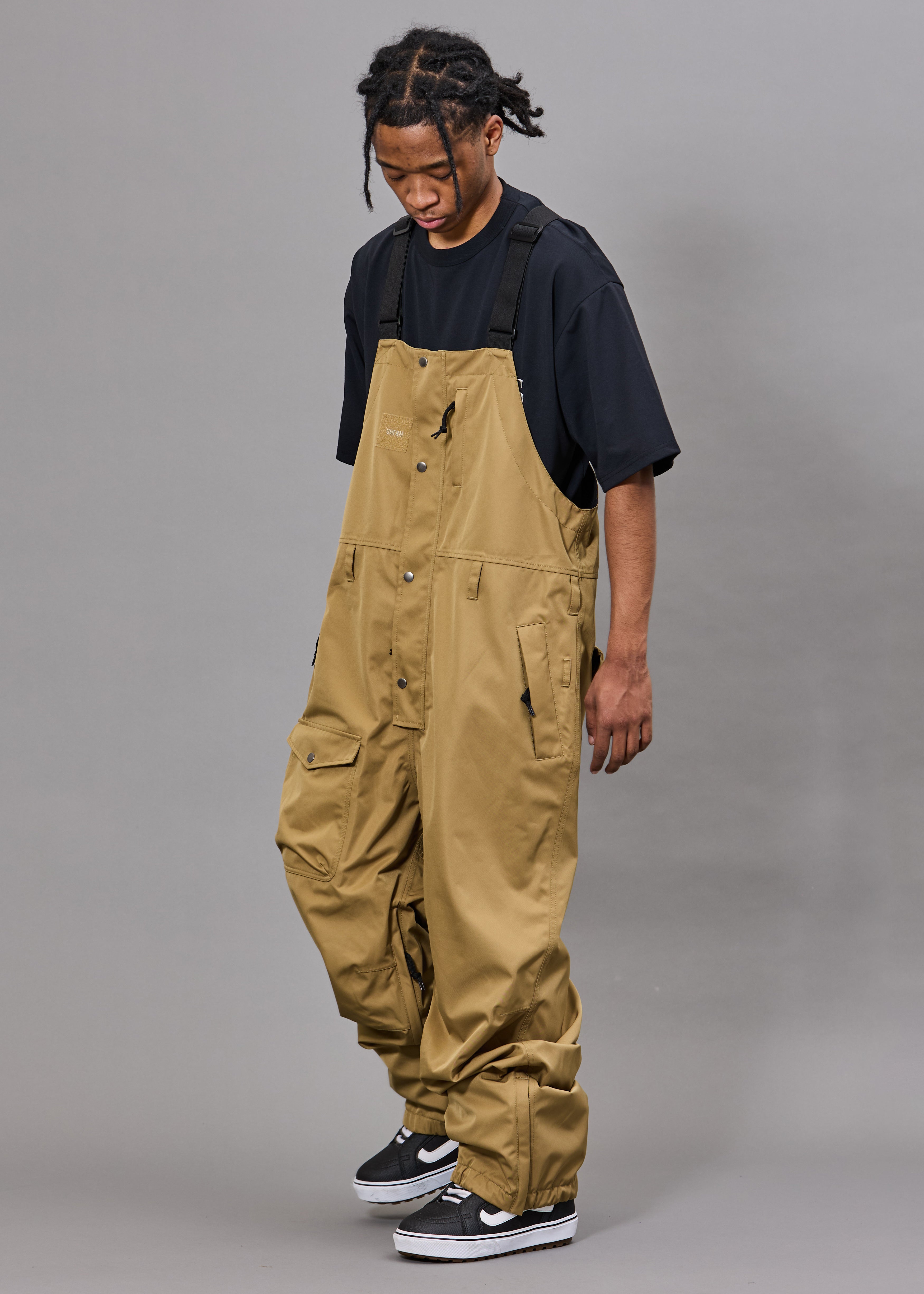 ミリタリーウェアを着想源に、UNFRMらしい機能性とデザインを融合させた MILITARY BIB PANTS。裏地には肌触りの良いマイクロフリースを採用し、保温性と快適な着用感を両立しました。程よいワイドシルエットで動きやすく、2箇所のベンチレーションが衣服内の温度を調整。フロントは長めのYKKビスロンダブルジッパーを使用し、着脱性と利便性を高めています。6つのポケットを備え、収納力も十分。裾にはジッパーとドローコードを配し、ブーツに合わせたシルエット調整が可能です。内側にはパウダーガードを搭載し、雪の侵入を防止。表面には撥水加工を施し、生地本体は 耐水圧10,000mm/透湿性20,000g/m²/24h を実現しています。高い機能性と無駄のないデザインを兼ね備えた、UNFRM SNOWラインを象徴するハイスペックなビブパンツです。